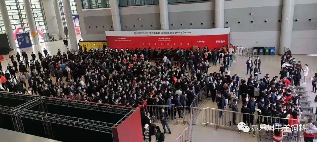 ▲本次中国饲料工业展览会参展人数创造了近年里程碑的新高,图为准备进入展馆注册大厅展商及参展人员